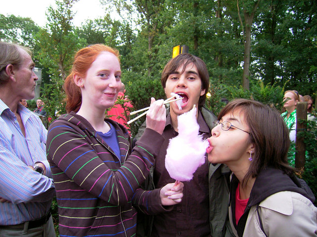 Aber auch am Abend war die Schlange zum Fliegenden Holländer noch lang. Wir besorgten uns was Süßes und stellten uns an - naschend vergeht die Zeit schneller... |