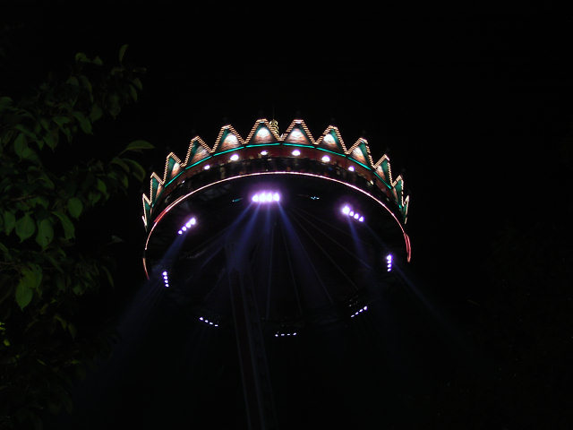 Kurz vor Verlassen des Geländes haben wir dieses Ufo kommen sehen. Nach 24 Uhr dürfen sich die Aliens im Park austoben... |